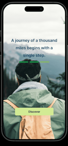 The first step was to display inspirational quotes, because many young travelers use this type of app. The messages acknowledge that traveling can be intimidating and gently support users as they begin their journey, helping build their confidence. Then users can sign up or log in with Facebook or Google. The process needs to be as quick as possible.