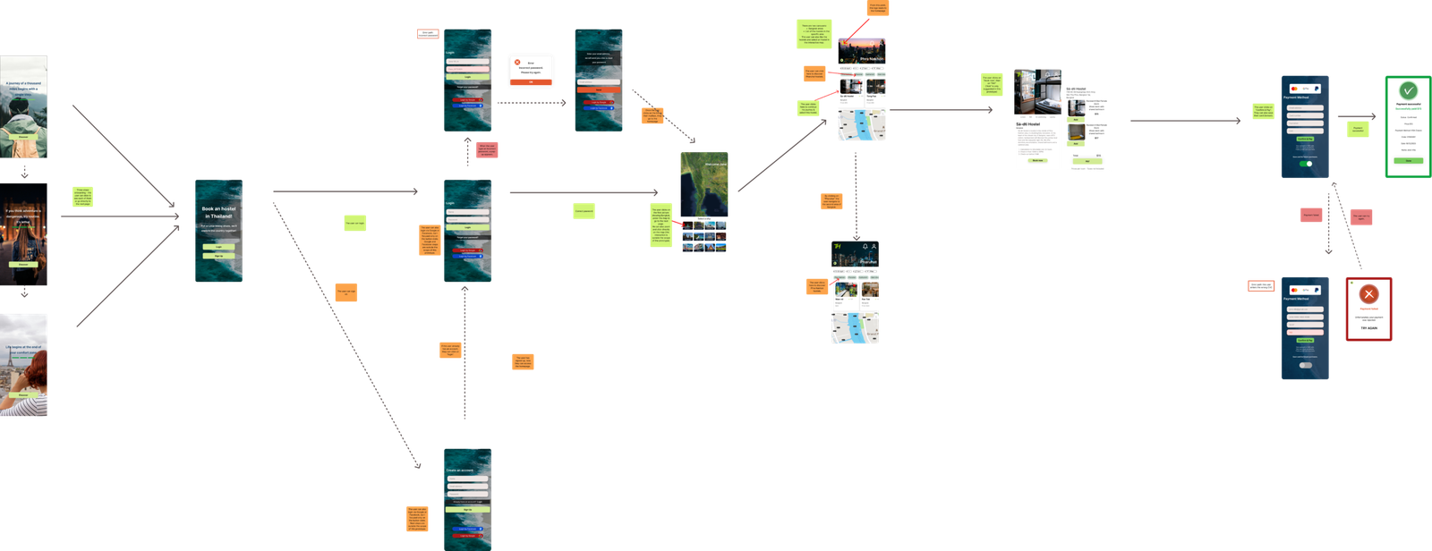 I designed a responsive prototype for a Hostel booking app prepared for handoff, including workflow conventions, accessibility considerations and descriptions of interactions and behaviours. The different steps of the experience are represented, from the three-step onboarding process to the payment page, including the happy path, alternative paths and error states.